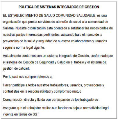 los lineamientos de Seguridad y Salud en el Trabajo el cual muestra que el